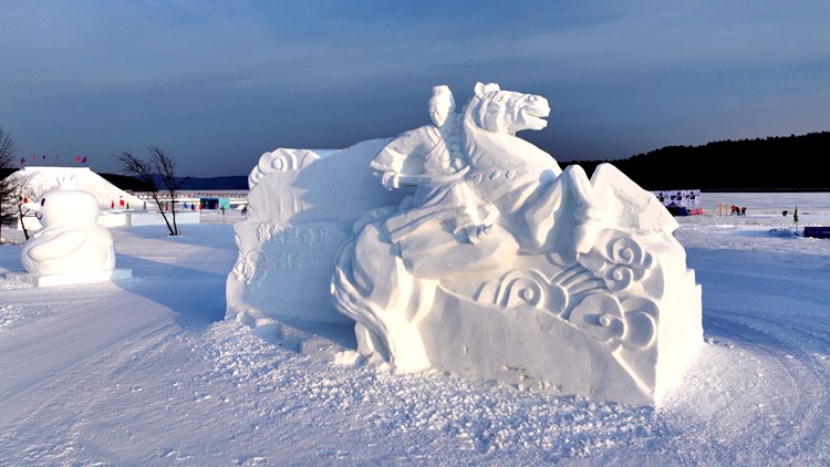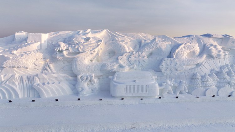 著力打造冰雪藝術氛圍,在雪世界規劃冰雪文化觀賞區,主雪雕以“龍騰盛世”為主題,長70米,寬13.6米,高13米,通體造型為巨龍騰飛于長白山之間,倡導冬季冰雪和關東特色旅游,通過自然風光彰顯人文魅力,造型兼顧航天科技、汽車產業和影視文化等元素,展現生態大省物阜民豐,突出吉林省經濟騰飛、文化繁榮。