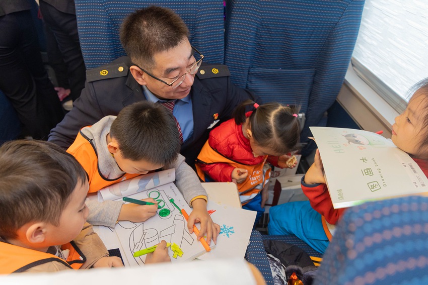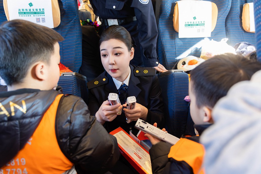 該段動車四隊5名青年志愿者也來到了列車上,和值乘班組共同開展了“愛心護苗”活動,為小旅客送水,抬放行李,一路暖心護送?!皷|北旅游熱爆火后,南方來的游客日漸增多,我們班組準備了暖寶寶、女士貼等服務備品和治療骨傷噴劑,隨時為有需要的旅客提供?!盌124次列車長胡慧敏說。為了做好此次11名小旅客出行順利,她不但提前組織班組乘務人員將小旅客接到列車上,妥善安頓,重點照顧,還聯系了吉林站提供綠色出站服務,全力以赴為游客們提供溫馨旅程。(潘潔)