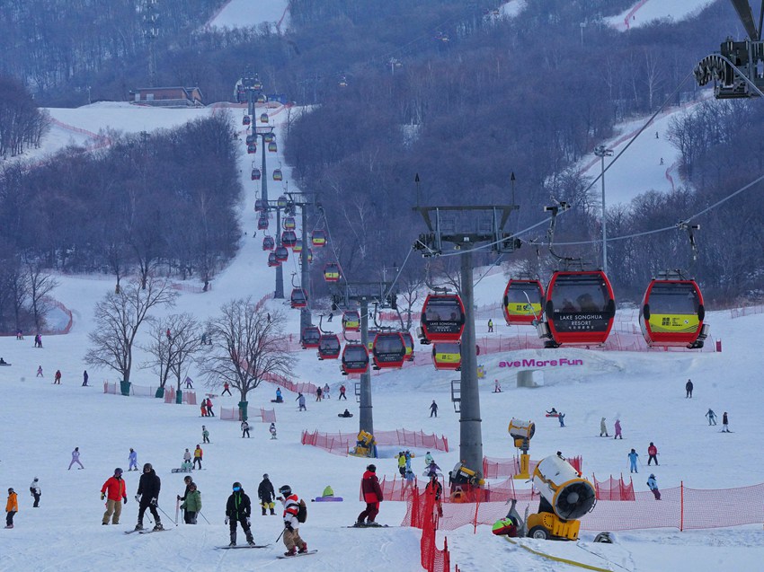 滑唄APP數據顯示,春節黃金周滑雪里程全國前十位的雪場,吉林有三家入圍,里程占比40.66%,北大湖列全國第一,高于第二位43.67%,遙遙領先。