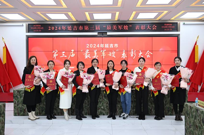 3月4日,在第114個“3·8”國際婦女節即將來臨之際,延吉市舉行2024年第三屆“最美軍嫂”表彰會。市委常委、市人武部陳希勇、州退役軍人事務局機關黨委專職副書記劉玉國、市婦聯主席車玉花、市退役軍人事務局局長王晶,市雙擁工作領導小組部分成員單位、各鎮(街)退役軍人服務站、駐延部隊、軍屬代表等70余人參會。