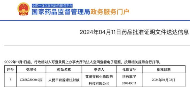 新藥研發是加快發展新質生產力,為企業和產業高質量發展增添活力的重要一環。4月11日,由康寧杰瑞(吉林)生物科技有限公司生產的國內首個rhTSH產品,人促甲狀腺素注射液正式獲得國家藥品監督管理局的上市批準,打破了國內20余年的市場空白。