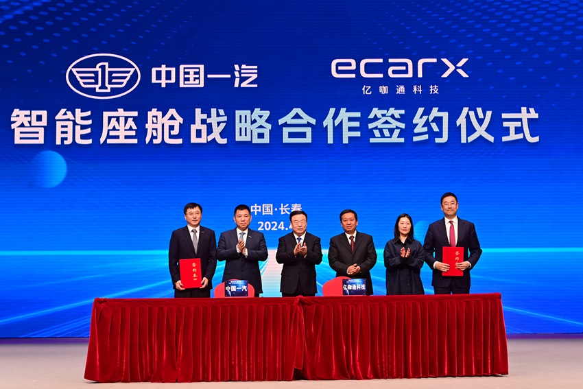 值得關注的是,當天,中國一汽與中國誠通、大疆車載、億咖通科技分別簽署戰略性新興產業協同合作協議、智能駕駛戰略合作協議、智能座艙戰略合作協議。