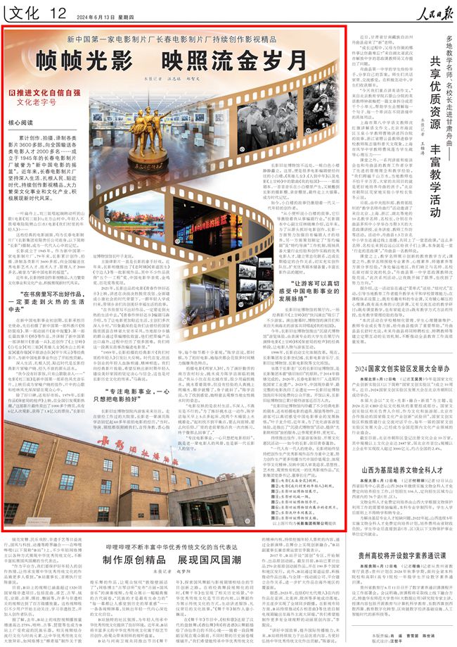 人民日報關注長春電影制片廠:幀幀光影 映照流金歲月