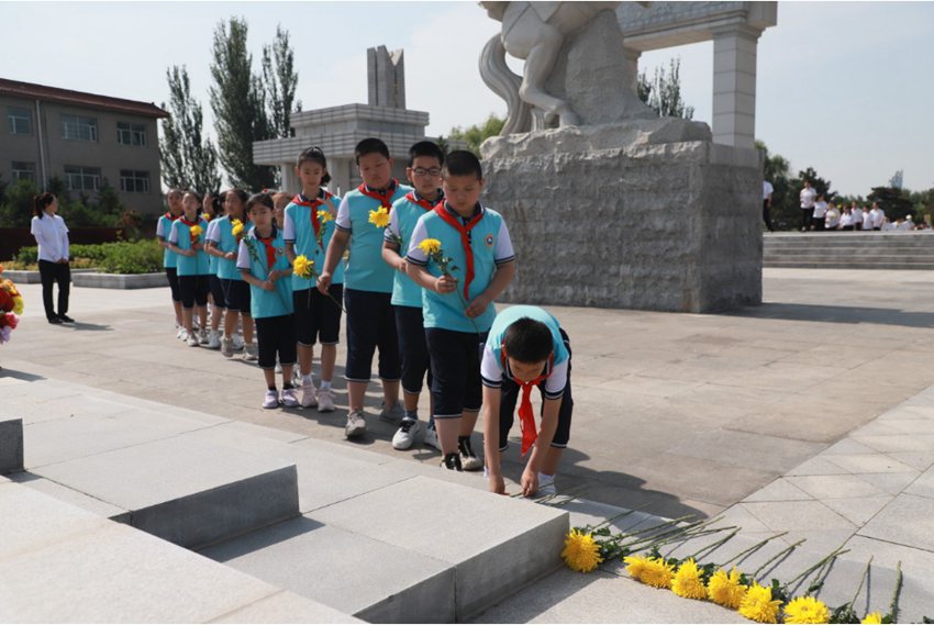 全體人員瞻仰馬仁興烈士墓并敬獻鮮花。四平市直區直黨政機關干部、學校師生、部隊官兵、退役軍人和社會各界群眾代表等230余人參加活動。