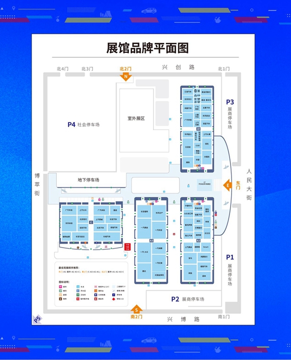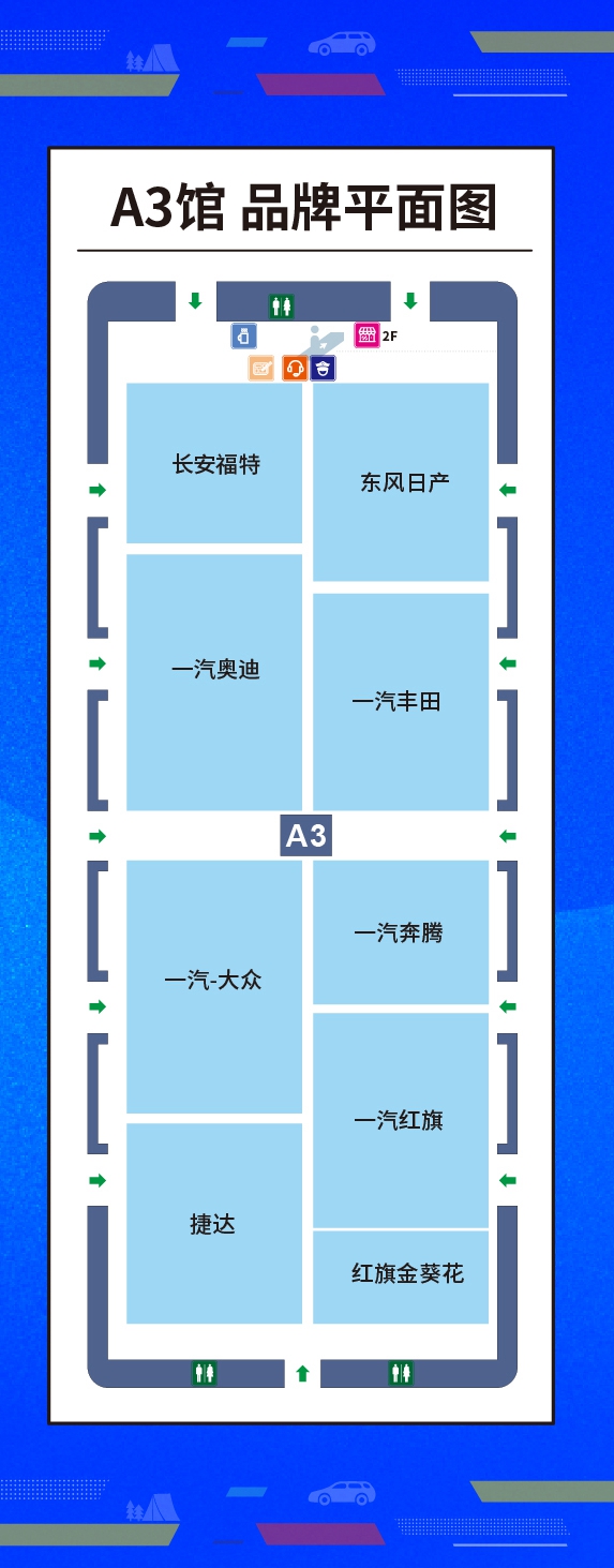 主會場展覽總面積17萬平方米,共規劃7大展區。其中,A1館為自主及新能源品牌館,A2館為豪華及新能源品牌館,A3館為中國一汽館,C館為綜合汽車品牌館,二樓為汽車服務用品展區;室外分為特種車型展區及互動體驗區。分會場共兩處,分別設在永春潮玩公園及露營公園、際華園賽車場,將舉辦汽車文化生活季、汽車運動等活動。線上展覽依托“云上汽博會”掌上平臺,實現“云展示”“云直播”“云發布”“云服務”。