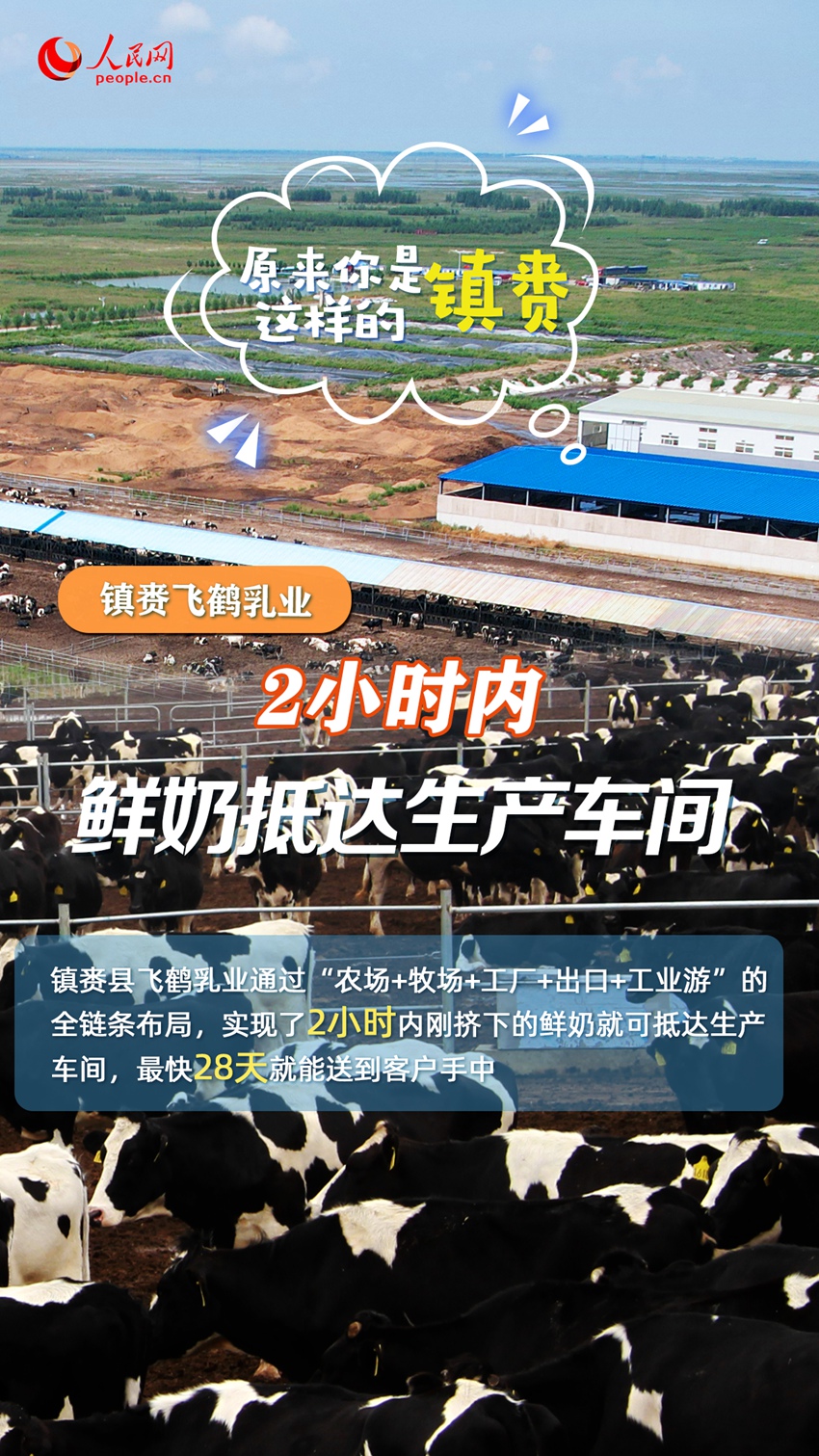 近年來,鎮賚縣飛鶴乳業通過“農場+牧場+工廠+出口+工業游”的全鏈條布局,全面切入服務端、供應鏈、生產端,實現2小時內剛擠下的鮮奶抵達生產車間,最快28天送到客戶手中,“2小時生態圈,28天新鮮直達”已成為行業標桿,打造了三個“吉林省之最”。