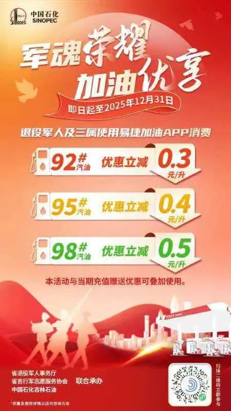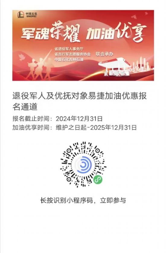 “軍魂榮耀·加油優享”退役軍人及其他優撫對象專屬加油優惠活動
