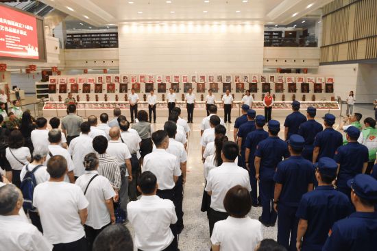 參加開幕式的領導、嘉賓看望老兵,大學生代表張婧?,F場演講老兵紅色故事。
