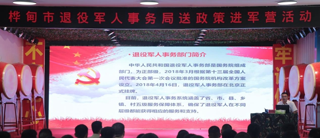 近日,樺甸市退役軍人事務局結合“新兵入伍季”和“老兵退伍季”,組織宣講人員走進駐樺某部隊,開展“送政策進軍營”活動。