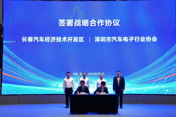 現場,來自深圳市汽車電子行業協會的30家企業和汽開區相關企業家代表暢談發展前景,共話前沿趨勢。經過前期的主動對接,汽開區與深圳市汽車電子行業協會成功簽署戰略合作協議,此次交流活動將有效推進深圳市與長春汽開區兩地在汽車電子領域的深度合作,通過搭建政企交流平臺、促進招商展示推介,不斷擴大汽車行業成果落地。