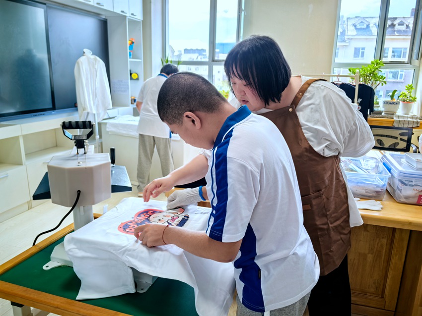 走進長春市寬城區培智學校(以下簡稱培智學校)教學樓,各個教室內一片火熱,有的老師指導學生制作精美的T恤衫;有的班級正在校企合作項目,將洗碗巾、洗澡巾等裝袋;烘焙室內老師和學生正一起做月餅,準備過節的時候發給孩子們……經過學校多年的培養,如今,這些“特殊”的孩子們不僅學到了知識,還會了很多生存技能,體會到了生活的樂趣,實現了自己的人生價值。
