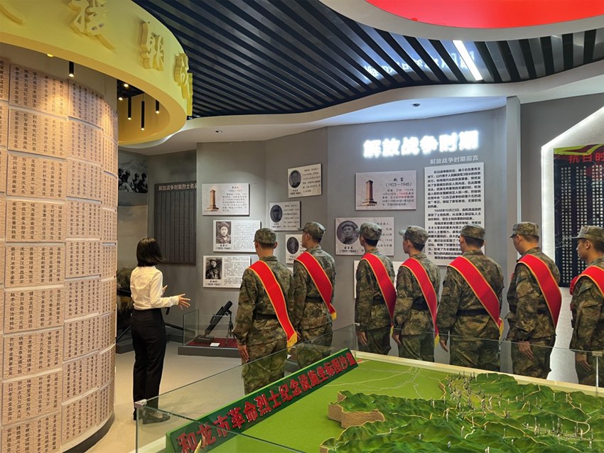 入伍新兵首先到和龍市英烈展陳進行參觀,在講解員的引領下,觀看了館內的歷史圖片、資料和英烈事跡,同時聆聽講解員講述了那段艱辛的歲月,真切領悟和龍市革命英雄對黨忠誠、不怕犧牲的革命精神和愛國情懷。
