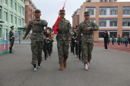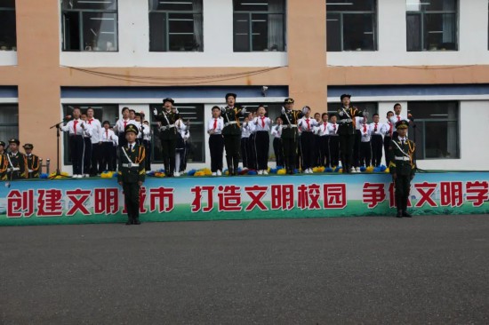 活動中,全校731名師生莊嚴肅立,3名吉行軍志愿服務隊隊員和13名城西小學學生組成國旗護衛隊,邁著鏗鏘有力、整齊劃一的步伐,護送國旗升旗手來到了旗桿下,在雄壯的《義勇軍進行曲》中,將鮮艷的五星紅旗冉冉升起。