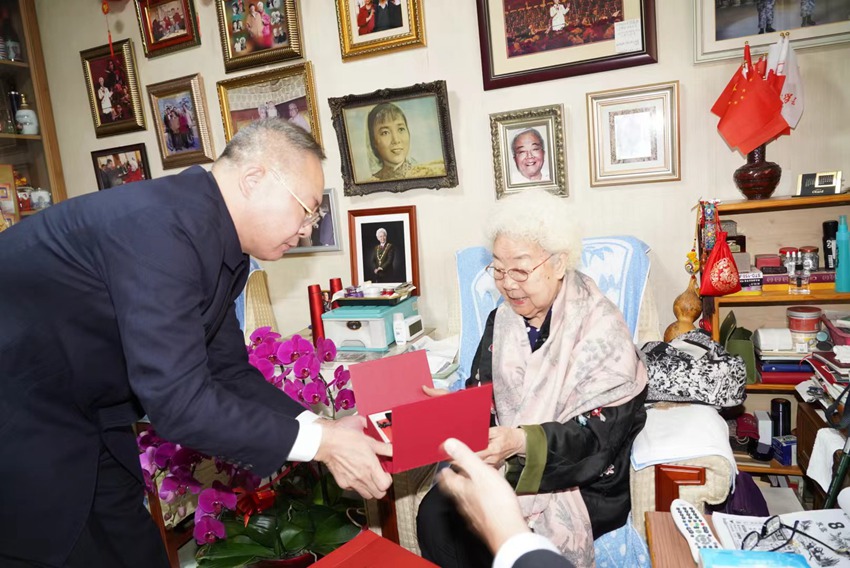 莊嚴表示,作為中國電影事業的代表,田華老師獲得“人民藝術家”國家榮譽稱號,是全體長影人、全體電影人的驕傲。多年來,田華同志關注長影、關愛長影,對長影的創作和發展寄予厚望,對長影的摯愛和鼓勵始終激勵著我們前進。當前,長影集團堅持“有歷史 正青春 見未來”的發展定位,傳承紅色基因,賡續紅色血脈,發揚以田華老師為代表的老一輩長影人的光榮傳統,正以昂揚的姿態和奮進的步伐,迎接中國電影誕生120周年和長影成立80周年的光榮時刻。莊嚴代表長影誠摯邀請田華老師再“回家”看看,并祝愿田華老師身體健康、藝術生命之樹!