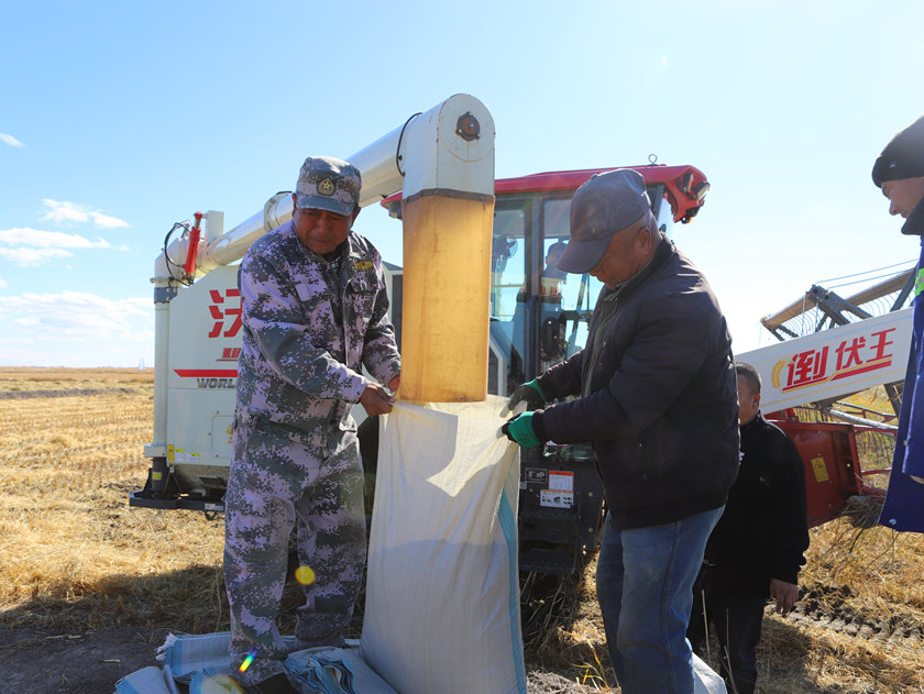 10月10日,在吉林省白城市鎮賚縣建平鄉金山堡村鎮賚縣鹽堿地等耕地后備資源綜合利用國家試點改善水田一期項目現場,三臺大型聯合收割機正在對改良后的示范田進行收割。這是由農業農村部鹽堿土改良與利用(東北內陸鹽堿地)重點實驗室組織,吉林省農業科學院(中國農業科技東北創新中心)與吉林協聯農業科技有限公司承擔的“重度蘇打鹽堿土全程綠色種稻改良技術核心示范區”機收測產現場。