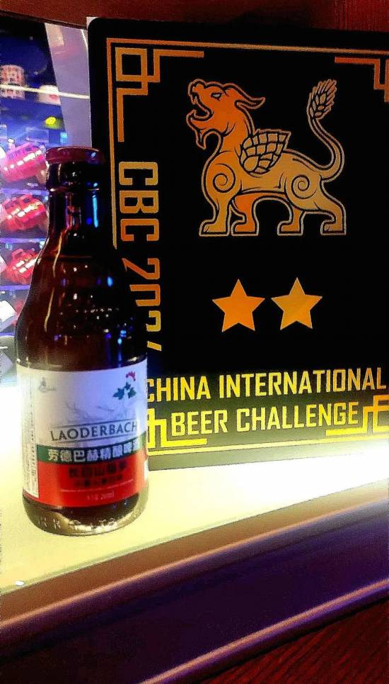 啤酒添加正宗長白山人參,使用進口麥芽和啤酒花等原料,采用獨特糖化和發酵工藝,極大限度的隱藏了人參的土腥味,酒體色澤金黃,泡沫潔白細膩,人參皂苷總含量達到39mg/L,苦味重而不長,口感比較清爽醇和。勞德巴赫人參白啤酒首試即獲得CBC中國國際啤酒挑戰賽二星天祿獎(等同于銀獎)。