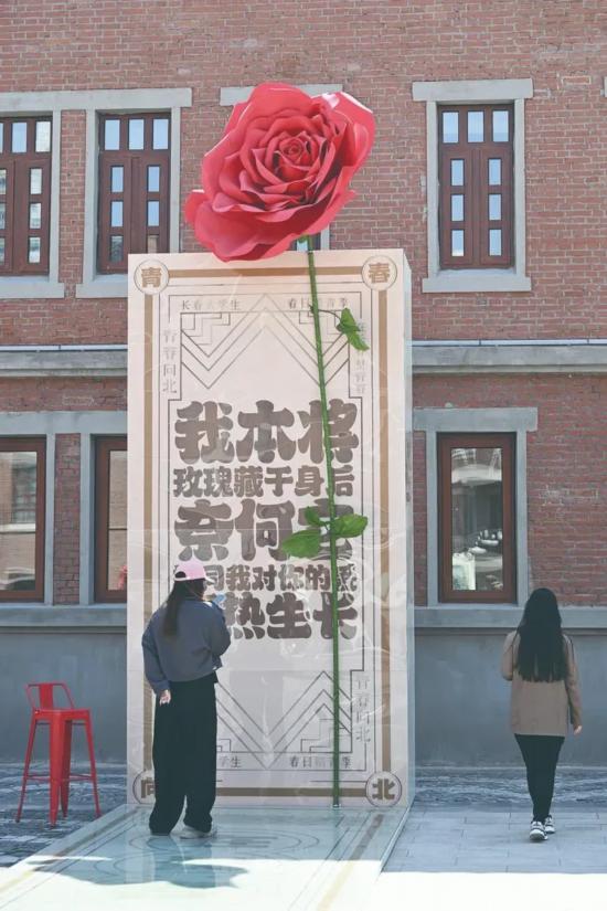 巨大紅色玫瑰象征著愛情和美好生活,遠處的相框為人們提供了一個拍照取景的點位,懷舊、浪漫的氛圍無需濾鏡,原圖直出!