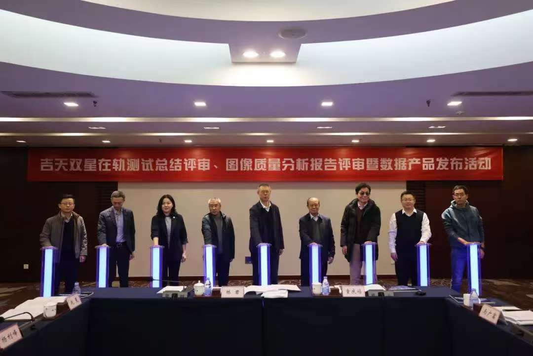 活動中,評審專家認真聽取《吉天雙星在軌測試總結報告》和《吉天雙星圖像質量分析報告》的詳細匯報,對有關測試過程及衛星平臺和載荷工況進行質詢,經深入交流討論,對雙星各項指標數據給予了高度評價。專家組一致認為:第一,依據在軌測試大綱,技術團隊完成了衛星平臺、有效載荷等功能和性能測試,測試結果符合任務書要求,衛星具備長期運行條件。第二,吉天雙星是具備非沿軌一次過境曲線成像技術的唯一可產業化、業務化運行的衛星,圖像質量良好,滿足設計要求;非沿軌一次過境曲線成像技術得到在軌驗證,已實現超千公里的曲線目標一次成像,達到國際先進水平!