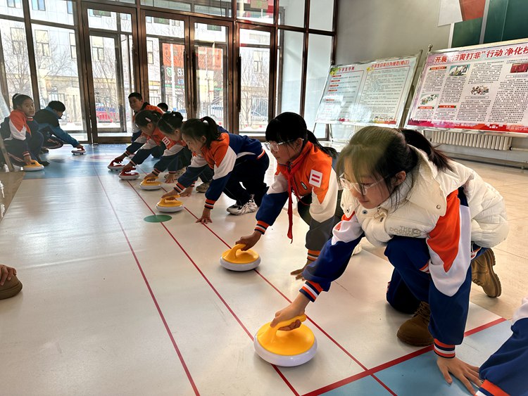 作為新時代寧江教育追求進步的代表,伯小更是希望能讓學生德智體美勞全面發展,雪地上的各項體育活動也是陸續開展。雪地足球賽、雪地跳繩比賽、拉雪圈比賽、雪爬犁比賽等都在孩子們的歡聲笑語中一一進行,更有伯小特色——旱地冰壺,在11月中旬已組建首批校內旱地冰壺隊并投入訓練,目前,小隊員們已經開始對抗訓練。