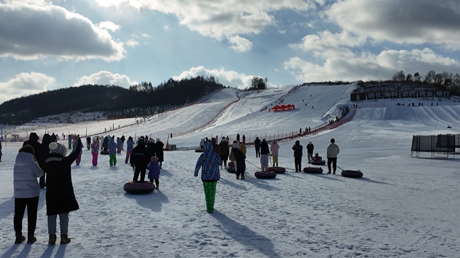 在戲雪樂園內,風馳電掣的雪地摩托車讓人領略速度的快感,俯沖而下的滑雪圈載著一路歡樂的笑聲,冰上自行車騎行讓人流連忘返……游客在這里盡情享受冰雪帶來的放松與樂趣。