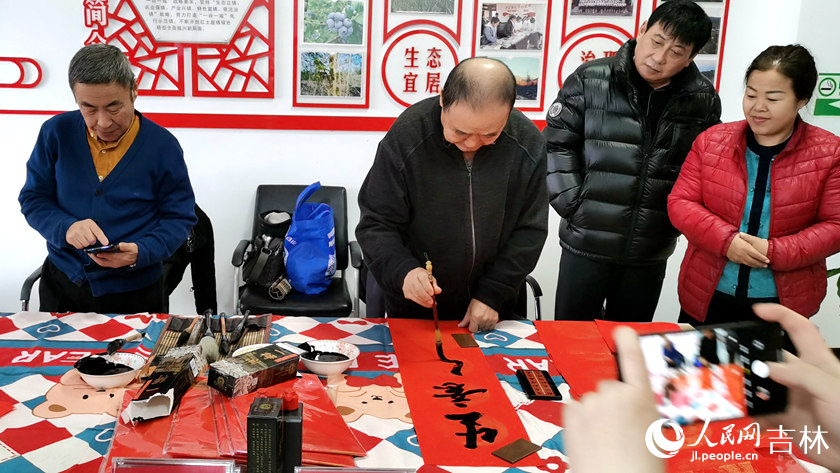 活動現場,長春和平大劇院的演員為現場農民帶來文藝演出,向群眾發放各類科普書籍、掛圖、資料等。白山市老年書畫研究會的書法家為參加活動的群眾現場書寫對聯、福字,讓大家提前感受到了濃濃的“年味”。