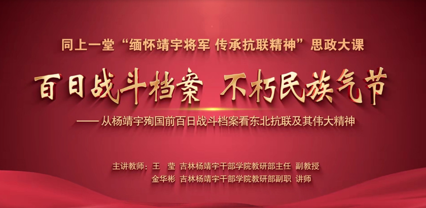 本次思政大課由中共吉林省委教育工委、吉林省教育廳、吉林楊靖宇干部學院聯合人民網共同舉辦。吉林楊靖宇干部學院教研部主任、副教授王瑩,吉林楊靖宇干部學院教研部副職、講師金華彬擔任主講。課程以《百日戰斗檔案 不朽民族氣節——從楊靖宇殉國前百日戰斗檔案看東北抗聯及其偉大精神》為主題,帶領全省學生回顧東北抗聯歷史,緬懷偉大的楊靖宇將軍,深刻感悟東北抗聯精神,汲取磅礴奮進力量。