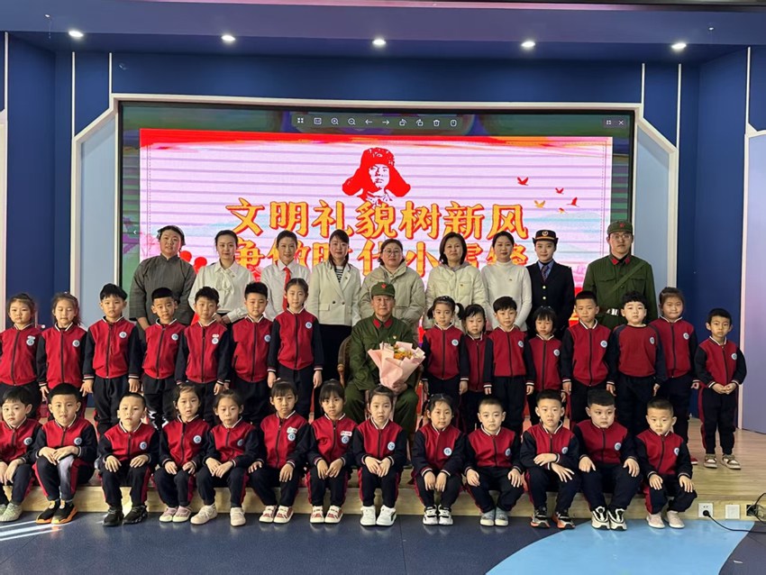 觀摩后,一場穿越時空的對話正式開啟,一段段紅色故事精彩紛呈:“1962年的那個雨天,雷鋒背著大娘走了十里泥路,自己渾身濕透卻把雨衣裹在老人身上……”魏老質樸的鄉音在耳邊不斷回蕩。他說:“作為雷鋒生前戰友,作為一名退役軍人,我總能記起那些在部隊時難忘瞬間?!碑斔v到雷鋒犧牲前的最后一封家書時,孩子們紅著眼眶紛紛鞠躬,向屏幕上的雷鋒畫像致敬。