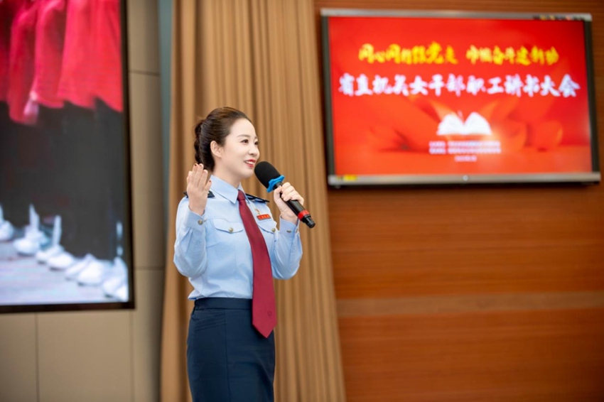 在省直機關女干部職工講書大會上,來自國家稅務總局吉林省稅務局的霍瑩分享《張桂梅》這本書的讀書感悟,講述稅務女干部在稅費征管、減稅降費、黨業融合和便民辦稅中實干擔當的生動實踐。