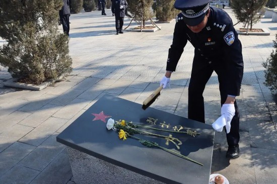 全體民警肅立莊嚴宣誓,重溫入黨誓詞,承諾踐行初心使命,用最質樸的方式傳遞對革命先烈的深切追思。隨后,大家分組行動,擦拭烈士墓碑、清理周邊浮灰和雜物、為每座墓前獻上寄托哀思的鮮花。陵園內,烈士墓在陽光與紅旗映襯下更顯莊重,仿佛無聲訴說著先烈們用生命鑄就的忠誠與信仰。