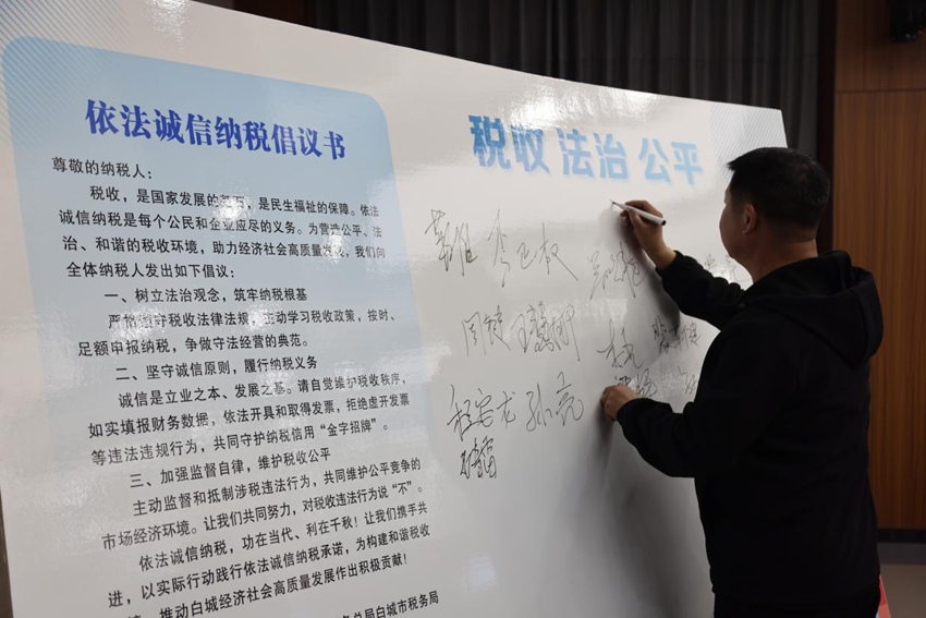 國家稅務總局白城市稅務局聯合白城市電子商務協會舉辦專題稅收政策輔導會,并組織進行依法誠信納稅倡議簽名,引導電商企業合規經營、誠信發展。