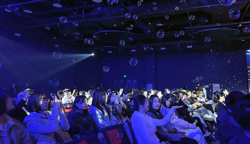 4月9日,吉林建筑大學的學生們走進了人民網“夢幻靈境”長春AI展演中心,體驗了與白澤的奇幻旅程。