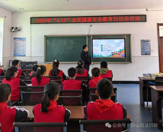 在渾江區三道溝鎮明德學校,江北分局李警官通過“國家安全小課堂”的形式向學生講解了《國家安全法》《反分裂國家法》《反恐怖主義法》《保守國家秘密法》等法律法規,結合邊境安全實際案例,剖析“非法出入境”“泄露國家秘密”等違法行為的危害,同時也普及了校園欺凌等知識?,F場還為學生發放各類普法宣傳資料、宣傳品,希望學生們化身“小小宣傳員”,向家長普及所學知識,推動普法教育從校園延伸至家庭。