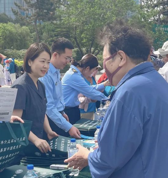活動現場,來自行政審判庭(綜合審判庭)的干警們與其他單位的工作人員們一起,化身為環境保護的宣傳員,將一份份印制著環保知識的宣傳單遞到往來群眾手中,內容涵蓋日常環保的竅門、垃圾分類的指南、低碳出行的綠色選擇等。