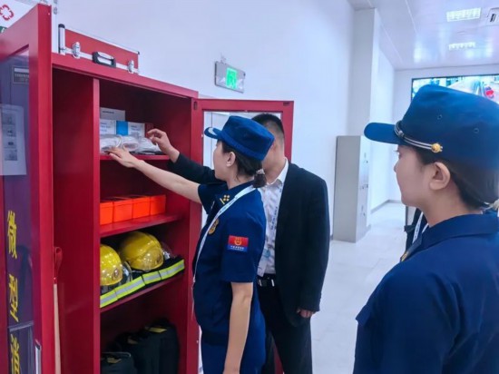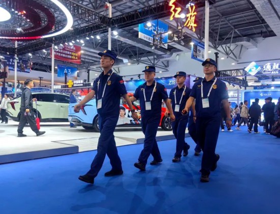 支隊成立由主要領導掛帥的消防安保領導小組,下設社會面防控、滅火救援等六大專項工作組,形成“統一指揮、分級負責、協同作戰”的高效指揮體系。布展階段(6月2日—9日),南部都市大隊2臺消防車定點駐守,朝陽大隊派駐3名監督員,會同9名展會專家對613個展位在布展過程中涉及電氣線路敷設、裝修材料使用等問題進行消防服務指導。展會期間,7輛執勤消防車按作戰預案嚴陣以待,23名執勤人員組成3個巡查小組,每日開展“地毯式”巡查,同步建立“隱患登記—限時整改—復查銷號”閉環管理機制,確保風險隱患動態清零。