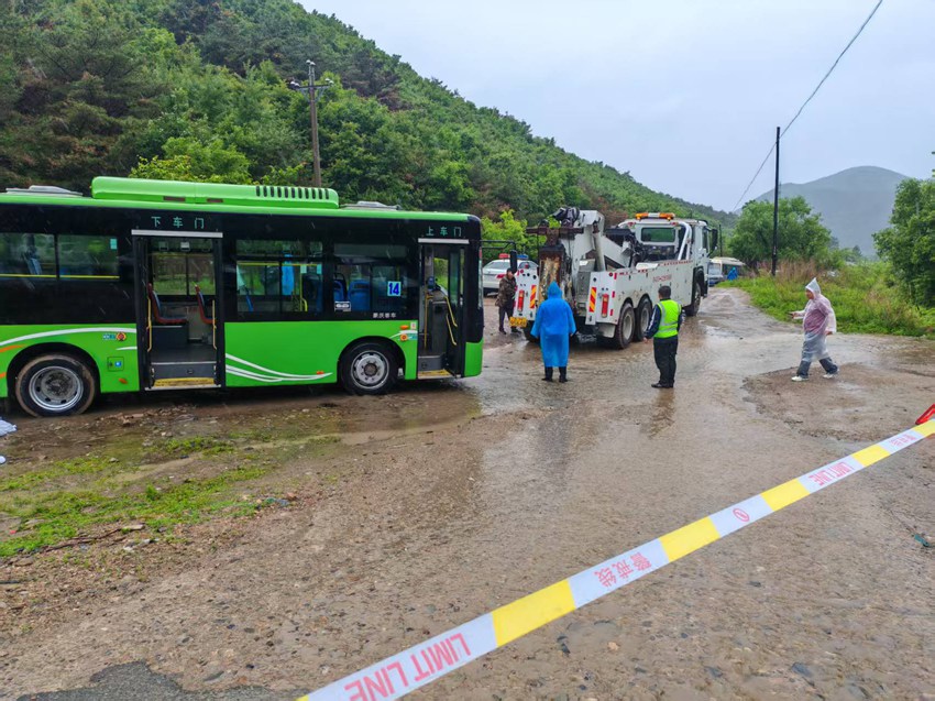 演練場景設定為暴雨天氣下,一輛正在運營的公交車行至積水路段,車輛熄火,情況危急。駕駛員迅速按照應急預案,向調度中心報告,并開啟危險警示燈,安撫車內乘客情緒。接到報告后,相關部門馬上行動,工作人員攜帶救援設備迅速到達事發地點,對車輛進行緊急救援,在現場設置警示標志,引導乘客轉移到安全地點,并將被困車輛拖離積水區域。在整個演練過程中,各參演單位緊密配合、迅速響應,高效有序地完成了車輛救援、人員疏散、交通疏導等各項任務。