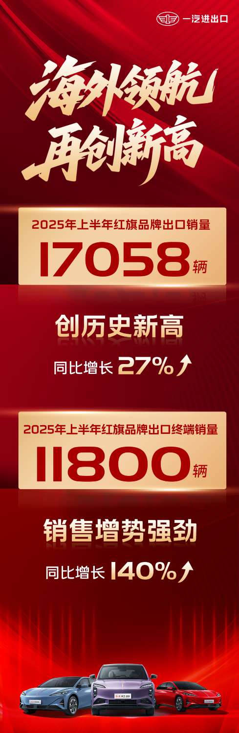 2025年上半年紅旗品牌出口銷量17058輛,創歷史新高!