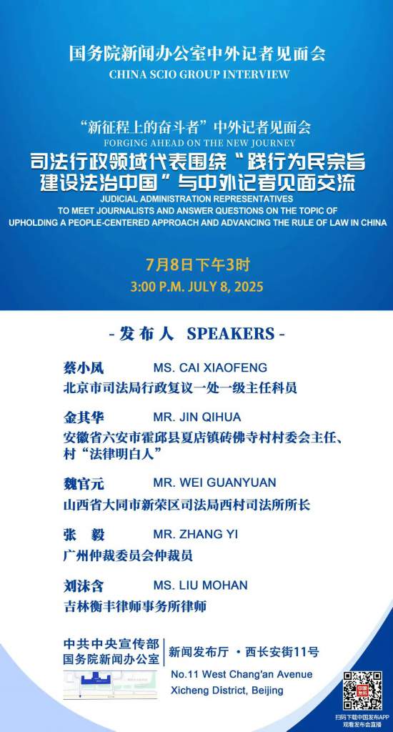 國新辦將舉行“踐行為民宗旨 建設法治中國”中外記者見面會