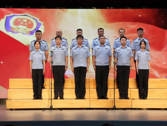 三支部以《強軍戰歌》激揚斗志,以《歌唱祖國》振奮豪情,全場干警揮動國旗,將氣氛推向高潮。