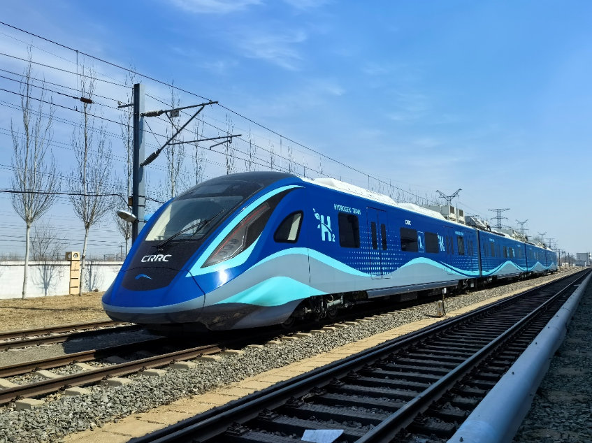 2024年,我國首列氫能源市域列車達速試跑。中車長客供圖