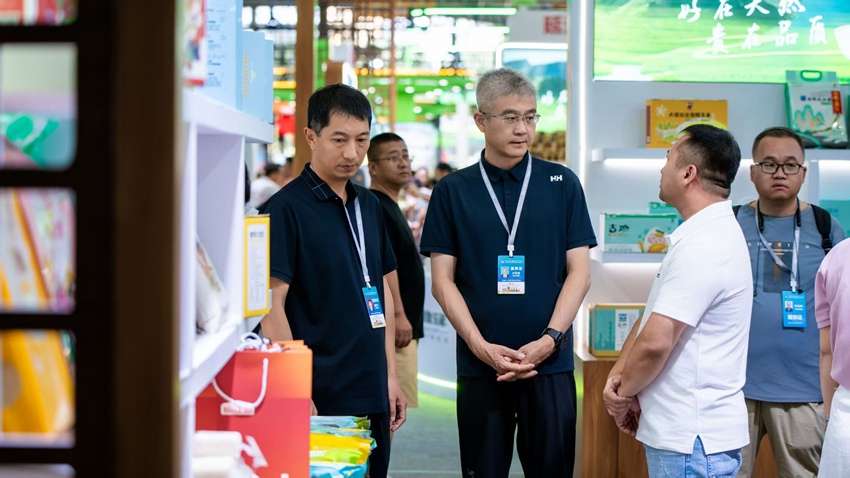 7月12日上午,以“糧安天下聚合力、產銷融通促發展”為主題的第七屆中國糧食交易大會在遼寧沈陽開幕。長春糧食展區以科技感十足的現代化設計驚艷亮相。吉林省糧食和物資儲備局黨組書記、局長柴冠專程來到長春展位視察,柴冠拿起了飽滿的米飯放入口中細細咀嚼,又掰下一段玉米品嘗,隨后連連點頭,由衷贊嘆:“長春大米、鮮食玉米確實好吃!這黑土地孕育的好糧,口感和品質都經得起檢驗?!?/p>