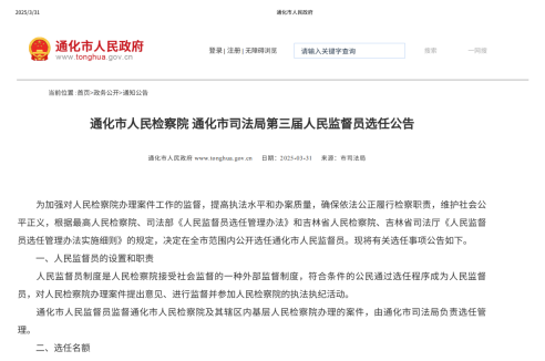 通化市人民政府網站發布選任公告