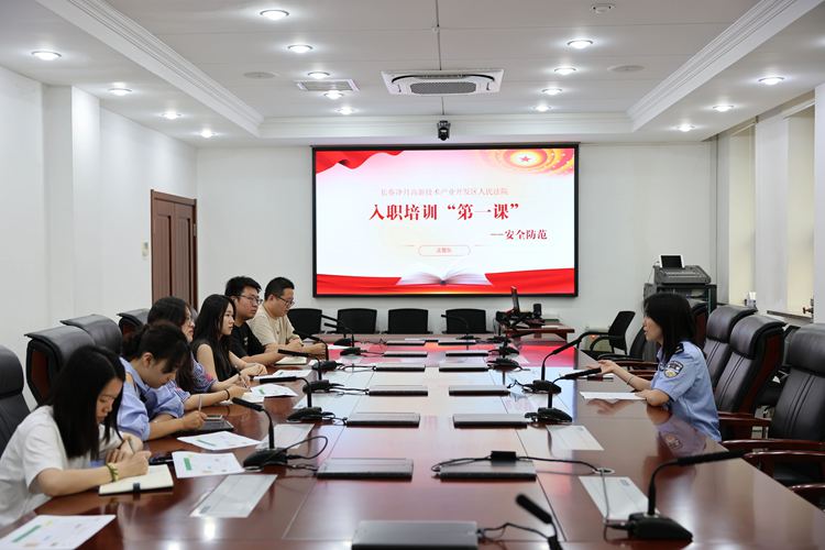 為助力新入職公務員快速融入法院工作,筑牢思想根基、錘煉履職本領,7月16日至7月18日,長春凈月高新技術產業開發區人民法院組織開展了為期三天的新入職公務員崗前培訓。通過“動員引領+庭審觀摩+專題培訓+警示教育”多維模式,為7名新入職公務員扣好職業生涯“第一??圩印?,為其注入奮進力量。
