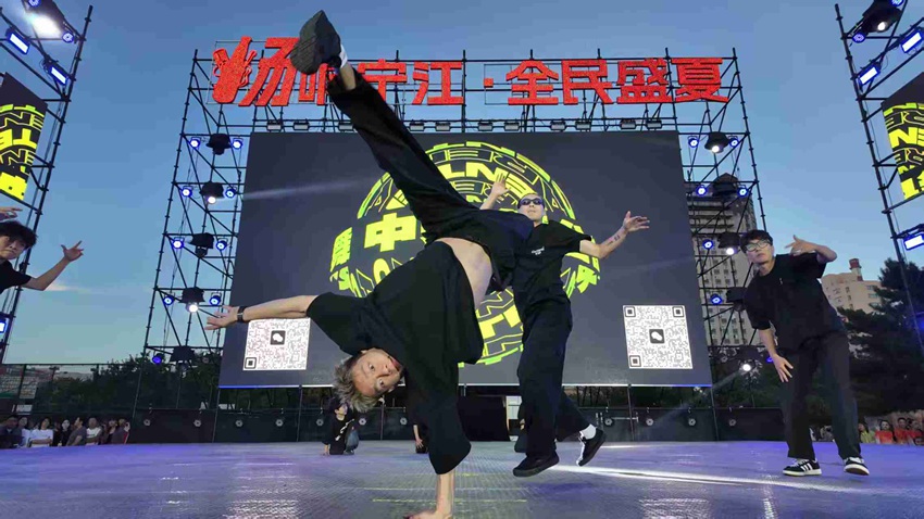 夜幕低垂,七點鐘時分,廣場上宏偉的舞臺燈光璀璨點亮。伴隨著主持人激情洋溢的開場致辭,活動正式拉開序幕。伯都訥街道精心編排的舞蹈《嬉樂》率先引爆了現場的氛圍,舞者手中鮮艷的紅綢在廣場中央翩翩起舞。隨后,區文化館的歌手劉賀以一曲《生而平凡》感動全場,觀眾紛紛舉起手機,點亮一片星海,與歌聲共同演繹著“平凡人亦是盛夏主角”的溫馨故事。緊接著,雙排鍵演奏的《鐵血丹心》以現代科技感重新詮釋了經典,少年們的精湛演出激起一陣陣熱烈掌聲。蒙古族舞曲《思念陪著鴻雁飛》帶領市民仿佛步入了夢幻般的草原。激情四溢的曳步舞《我跟我癡心》更是將現場的氣氛推向高潮?;顒又写┎宓膬奢喅楠劖h節,一次又一次掀起熱烈的氛圍。手提獎品的李女士滿臉喜悅:“帶著孩子出來乘涼,意外地遇到了好運!”廣場一側,查干湖啤酒兌換點前排起了曲折的長隊,冰鎮的酒香在空氣中彌漫,陌生人之間的碰杯與笑語,繪制出了城市中心最為動人的繁華圖景。