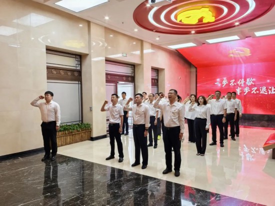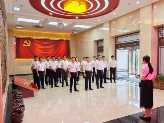 參觀結束后,全體黨員干部面對黨旗重溫入黨誓詞,錚錚誓言中,飽含著大家堅守初心使命、永葆廉潔本色的堅定決心。