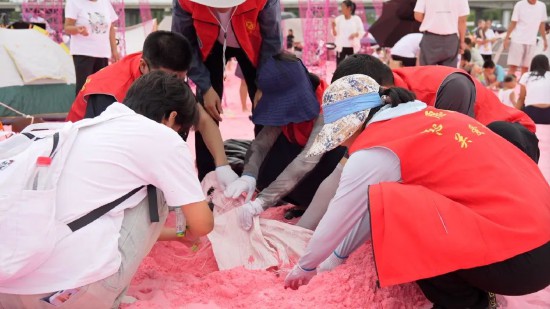 倡議聲聲入耳,游戲趣味盎然,最終要義仍歸于行動。當日活動尾聲階段,近百名貼上“悅享凈生活”志愿服務標識的市民與志愿者戴上手套,手提垃圾袋,分散至河岸各處,俯身開始地毯式清理,志愿者李女士表示:“能參與這樣的活動,用自己的雙手讓公園變得更干凈,感覺特別有意義。希望通過我們的行動,能帶動更多人愛護環境?!?/p>