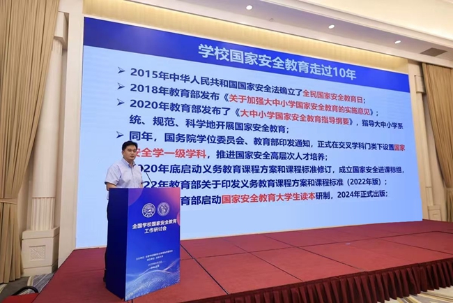 程建平指出,國家安全是安邦定國的基石,過去十年,國家安全教育實現了跨越式發展,課程體系建設不斷完善,實踐教學不斷創新,師資隊伍骨干力量不斷壯大,全民國家安全意識顯著提升。面向未來,全國學校國家安全教育指導委員會要面向全國大中小學國家安全教育教學,發揮好研究、咨詢、指導、評估和服務作用,為構建高質量國家安全教育體系提供堅強的專業支撐和制度保障,希望各位委員充分利用教指委這個平臺,圍繞當前國家安全教育面臨的重點、難點問題,提出具體、可行、有創新性的工作建議和解決方案,共同開啟全國學校國家安全教育事業高質量發展的新篇章。