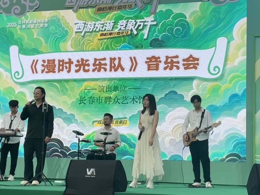 在主舞臺不遠處的長春文旅街頭音樂會,更是氛圍感拉滿。隨著一首首優美動聽的音樂響起,舞臺燈光溫柔亮起,觀眾自發舉起手中的熒光棒,點點熒光隨著音樂節奏輕輕搖晃,這場戶外“音樂會”讓人們瞬間沉浸在愉悅的音樂氛圍里。