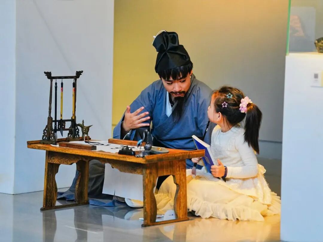 8月30日,一場別開生面的“時空漫游”情景互動在雕塑博物館拉開序幕。表演者扮演的現代“四大才子”與“私塾先生”與觀眾幽默互動,打破時空界限;本土雜技團隊帶來“驚鴻絕技”秀,演員們以高難度動作與沉浸式表演,引發觀眾陣陣掌聲;在春天廣場上演的吉他彈唱專場演出,年輕人以樂會友,用旋律交流青春態度。
