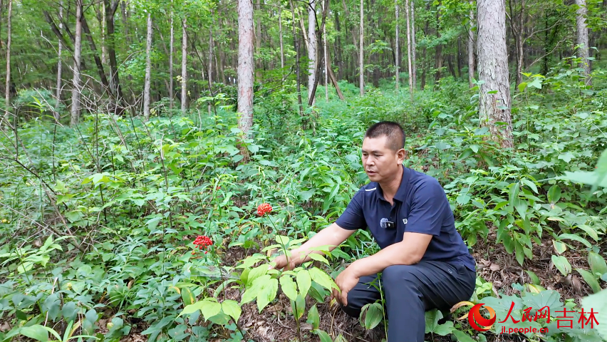 通化市東昌區林下山參種植戶汪太東在參地巡山。 人民網 邱茜攝