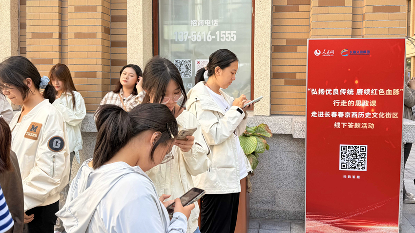 人民網長春9月17日電 (記者馬俊華)一條沉淀百年歷史的長春街道,一群穿梭于古街老巷的青春大學生,一場以“弘揚優良傳統 賡續紅色血脈”為主題的思政課……今日,“行走的思政課”線下答題活動長春大學專場在長春市北京大街西歷史文化街區開展。 本次活動由人民網、長春文旅集團精心設計,將傳統思政課堂從校園延伸到充滿歷史底蘊的城市街區,通過在歷史街區尋找題卡,交流討論互動答題,引導青年學子深刻感悟東北抗聯精神,汲取奮進力量?!?/a>